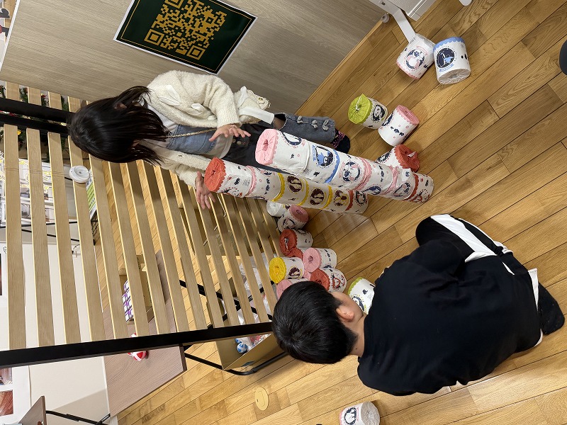 制限時間内に10個積めるかどうかのチャレンジですが、これが意外と難しい…!大人の方も本気モードで挑戦され、「惜しい〜!」「ざんねん~~!」と倒れる瞬間に会場は大盛り上がりでした😫✨