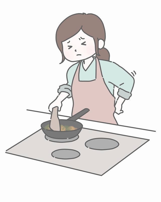 逆に高すぎると、包丁で硬いものを切る際に力が入りにくかったり、高い位置にある鍋の中身が見えにくくなったりします。腕を常に上げた状態で作業することになるため、肩こりを引き起こすこともあります。