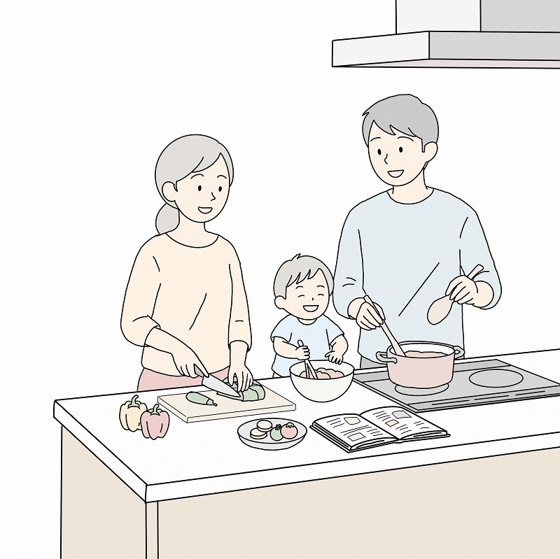 近年は共働き世帯も多く、ご夫婦で料理を楽しむケースが増えています。身長差がある場合、基本的には「メインで長時間使う方」に合わせるのが鉄則ですが、頻度が同じくらいであれば、高めの設定にして「厚手のまな板」や「スリッパ」で調整する方が後悔が少ない傾向にあります。