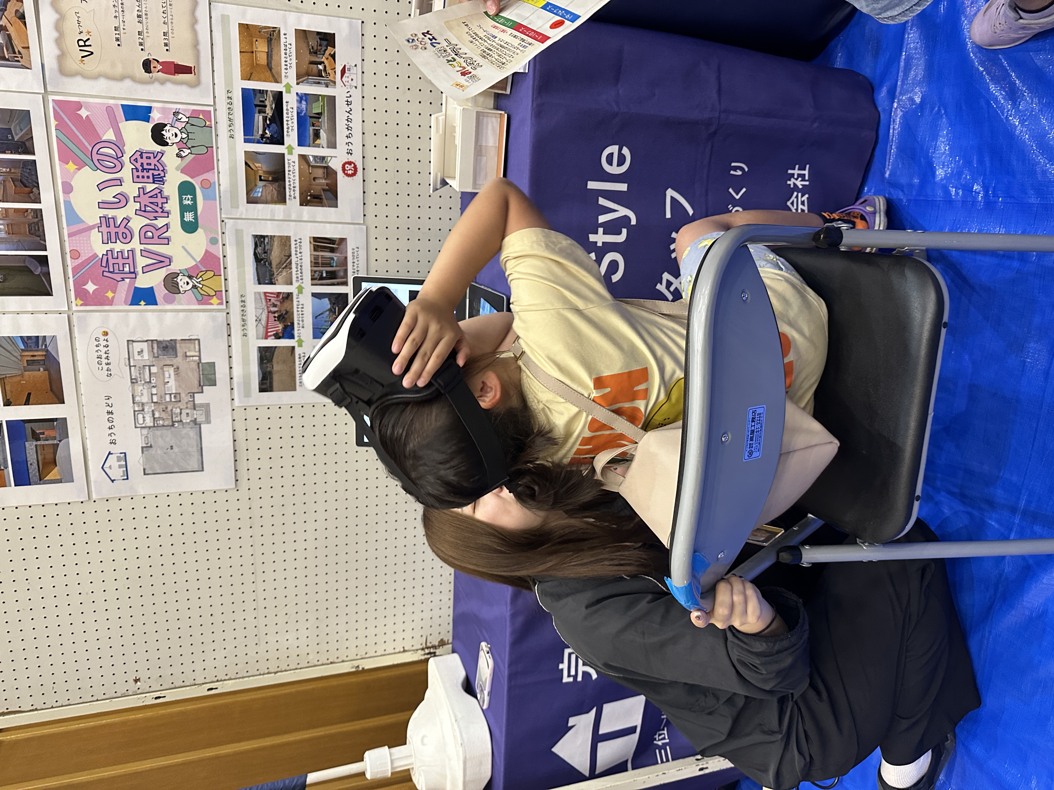 ゴーグルをつけて、実際に高屋工務店が手がけた住宅の内部を360度見渡すことができるコンテンツで、普段はなかなか見られない完成後の家の雰囲気を疑似体験してもらいました🏠