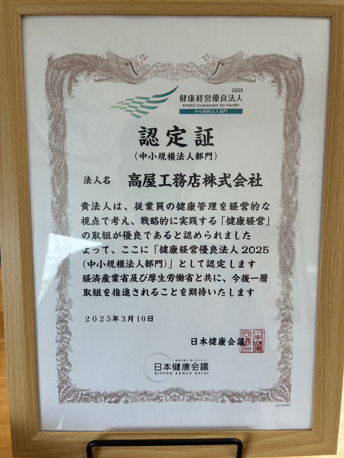 高屋工務店では、社員一人ひとりの健康を大切にする「健康経営」に取り組んでいます!