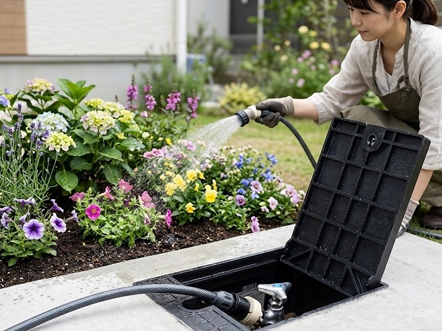 ・屋外水栓は「凍結防止水栓」や「水抜き栓」を設置