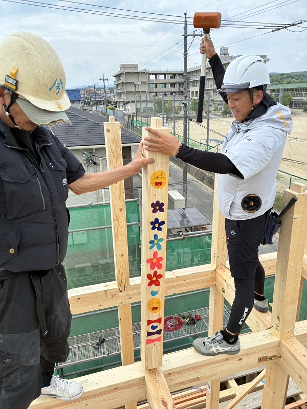 普段現場に入れないお子様にとっては、大工さんが働く姿を間近で見ること、そして自分で家の柱に触れることは、一生忘れられない「家づくりは楽しい」という記憶になります。