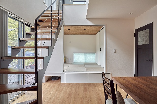 👉 例:小さなお子さん用のおむつ・おもちゃ収納ができる小上がり下収納+ルンバ基地