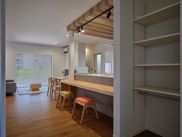 👉 例:キッチンカウンターの横に子ども達のランドセルなど学校の荷物が置ける収納