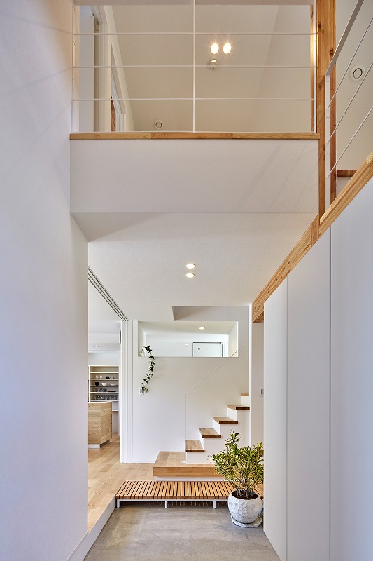 スキップフロアにいても、玄関でのお見送りや「いってらっしゃい」「おかえり」の声が自然と届きます。空間を共有しながら、心もつながる、そんな設計です。