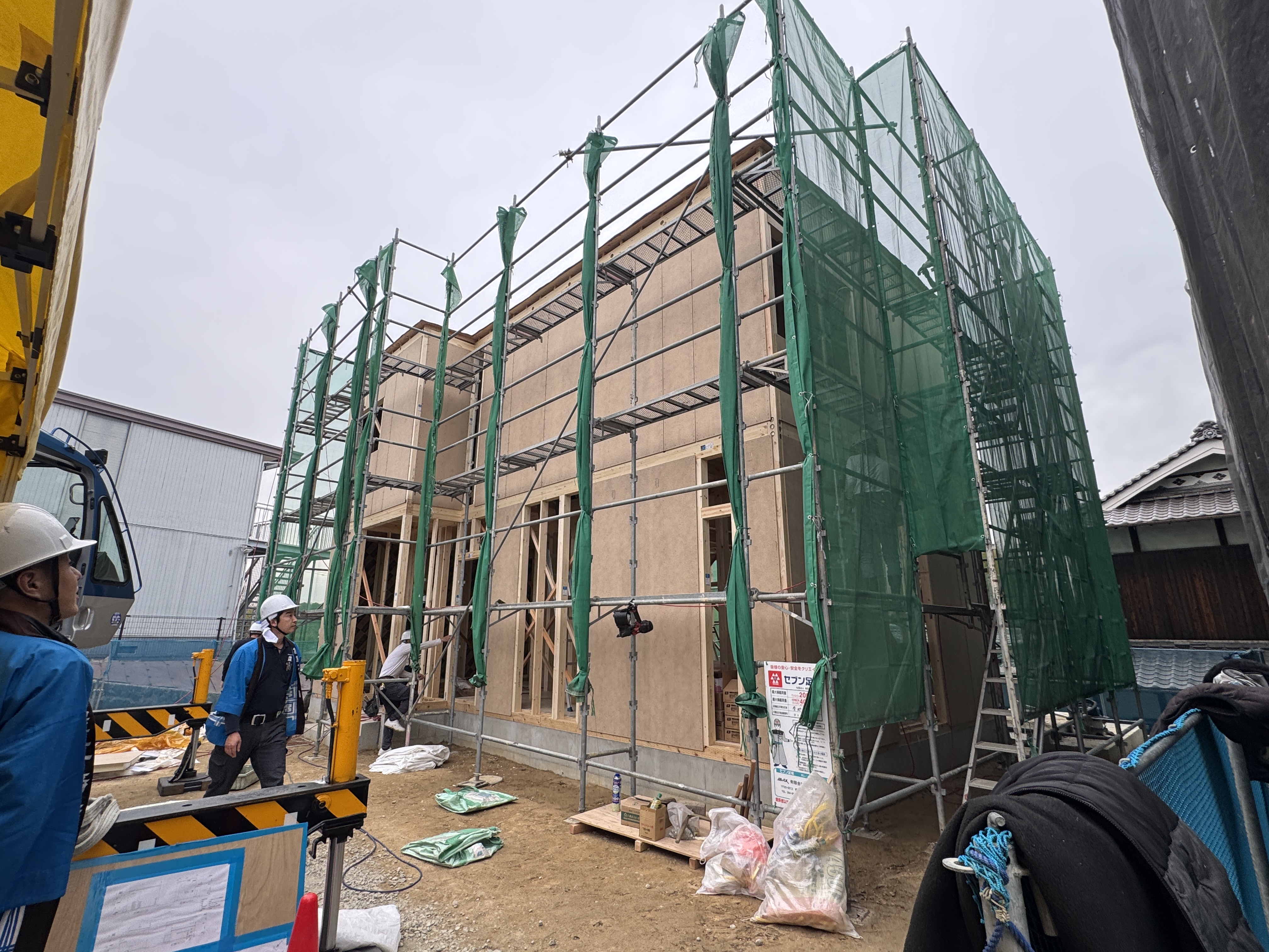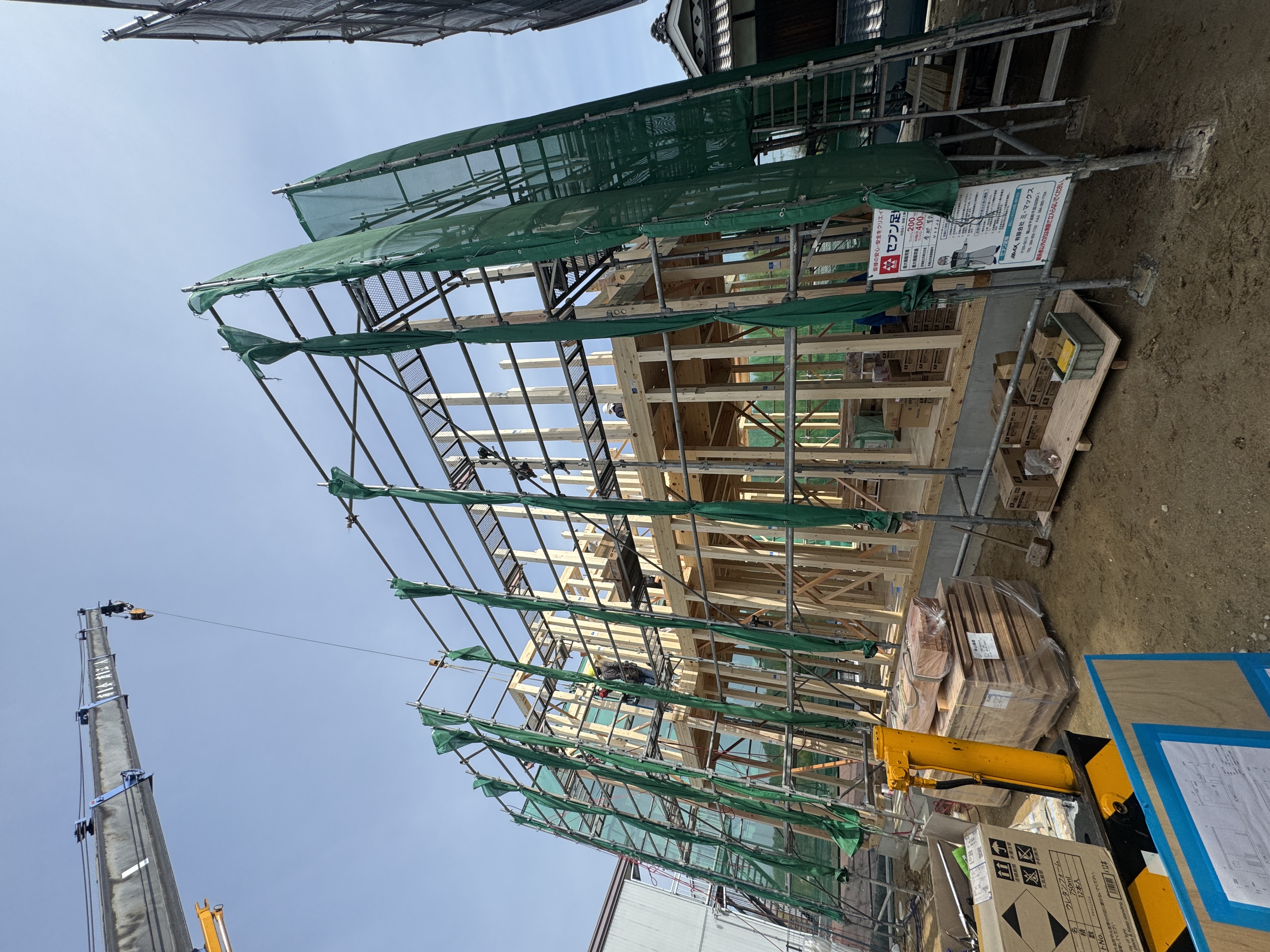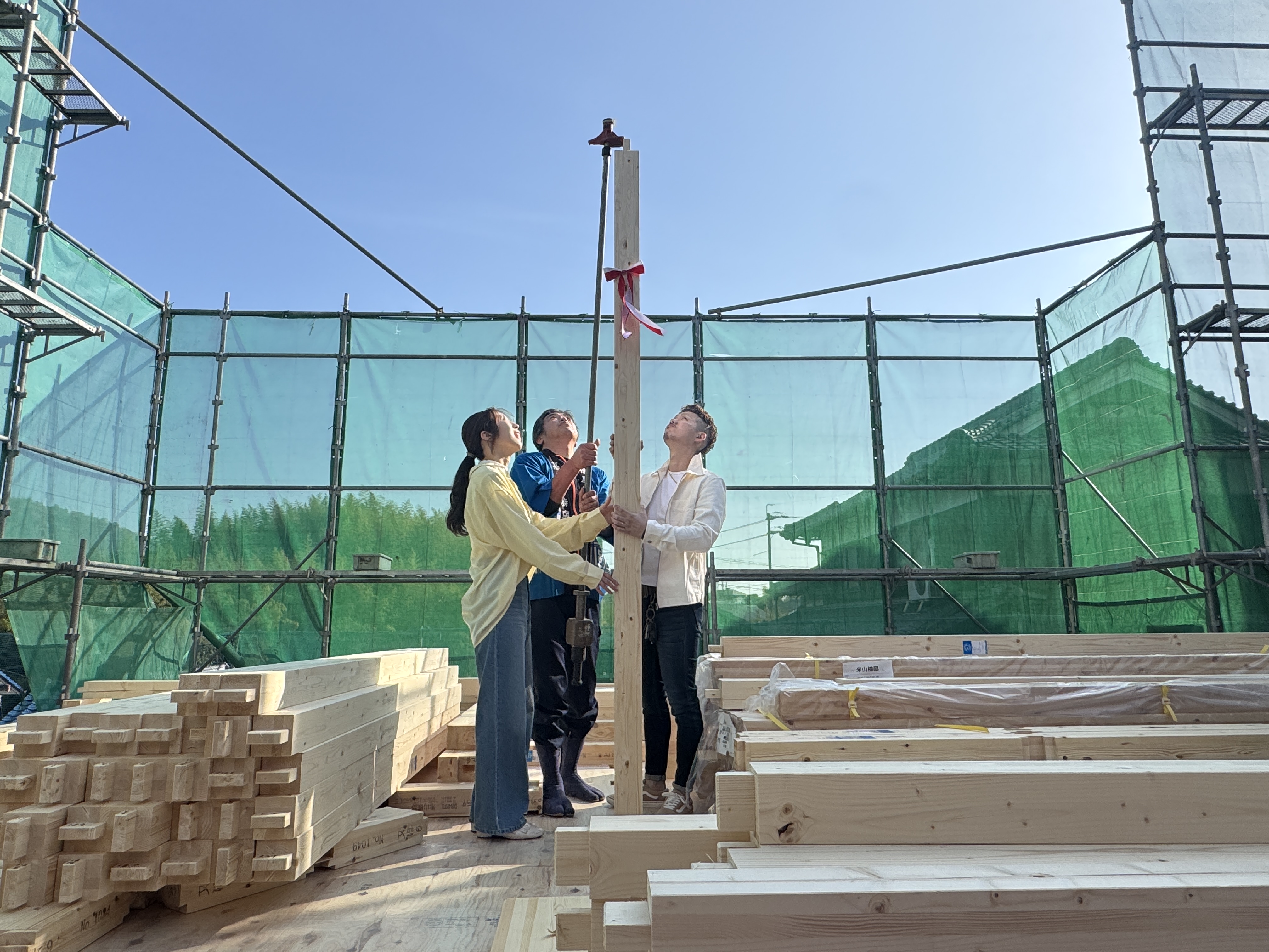 快晴の空の下、たくさんの想いが詰まった住まいが、いよいよ形になり始めました。