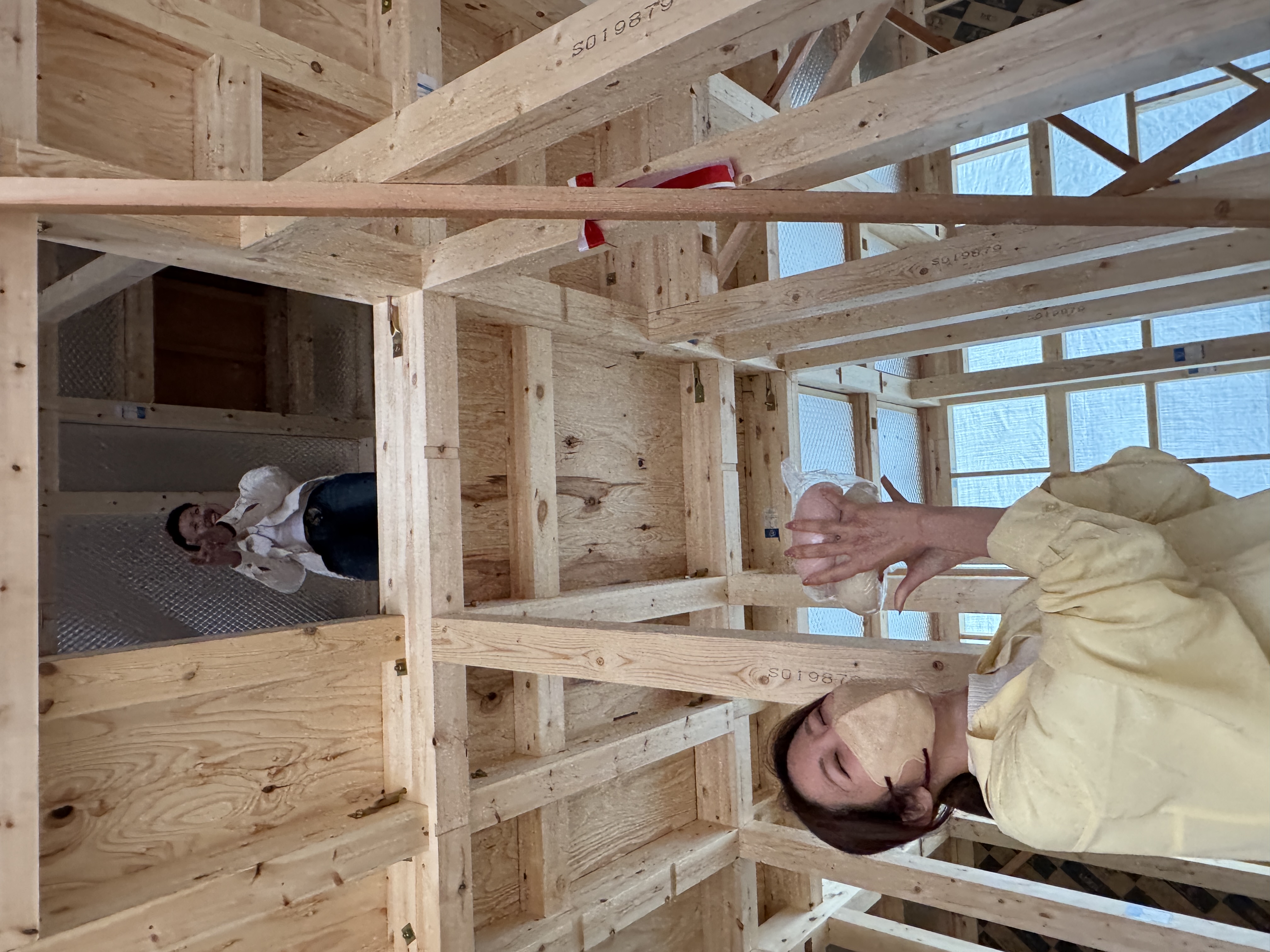 Y様ご夫婦で四角餅と中心餅を撒いていただき、工事関係者一同にも福を分けていただきました‼
