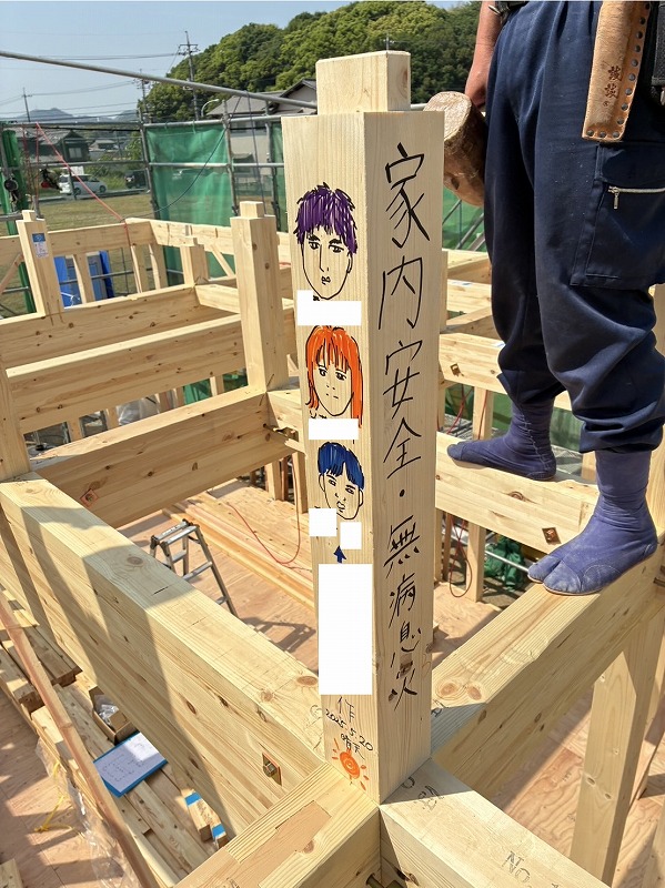 棟木を支える束に、ご家族の「似顔絵」と「願いごと」が描かれているんです😊🎨