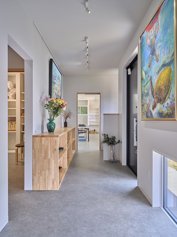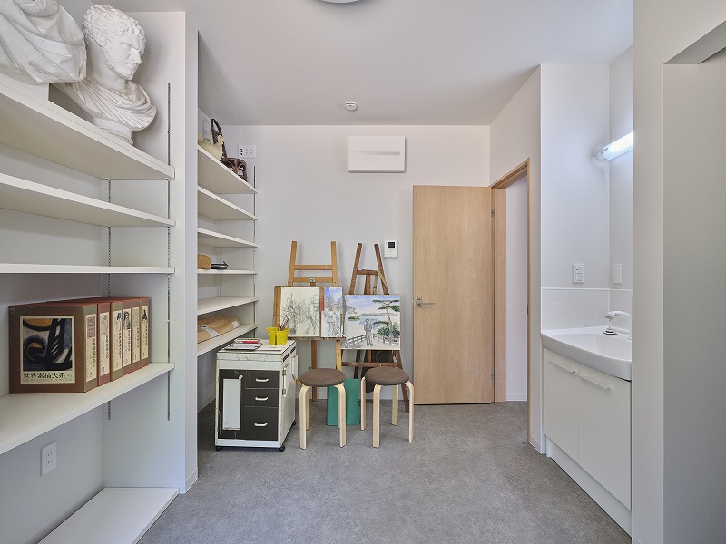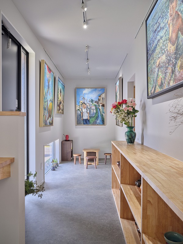 一覧 back > 「創る・教える・暮らす」が 心地よくつながる家 延べ床面積113.97㎡(34.47坪) 1階は、美術教室としても使えるアトリエ空間。 2階は、機能性と眺めを両立した暮らしの空間。 作品と向き合う時間、家族と過ごす時間、どちらも大切にできる住まいが完成しました。 ロビー ロビー 教室 教室 教室 洋室 ダイニング リビング ロフト 外観 外観 一覧 back >