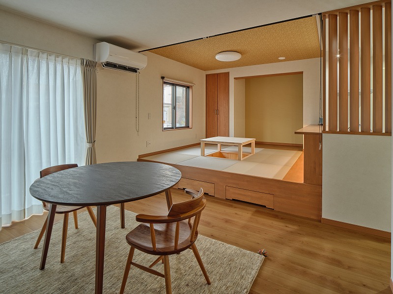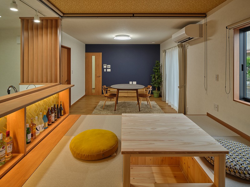 一覧 back > 居酒屋気分を味わえる平屋 延べ床面積80.32㎡(24.24坪):3LDK ・居酒屋気分を味わえる“くつろぎの畳スペース” ・ワンフロアで完結する、スムーズな家事動線 ・夫婦時間も家族時間も大切にできる3LDK+畳スペース ・エコで快適!省エネ設計のあたたかい住まい プシュッと開ける一杯が特別になる平屋が完成しました。 LDK LDK 畳スペース 畳スペース キッチン 洋室 洋室 お風呂 玄関 外観 外観 一覧 back >