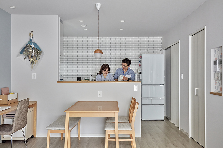 高屋さんのスタッフさんは皆とても話しやすくて、なんでも言いやすかったのですごく良かったです。図面の段階にも建築中にもいろいろお願いしましたし、入居してからも「洗濯機の水があふれちゃって」なんて相談したこともあります。いつもすぐに気持ちよく対応してくださるので、家のことはいまだに連絡しちゃいますね。施主同士で触れ合えるイベントなども楽しいです。これからも、長いお付き合いをお願いします。